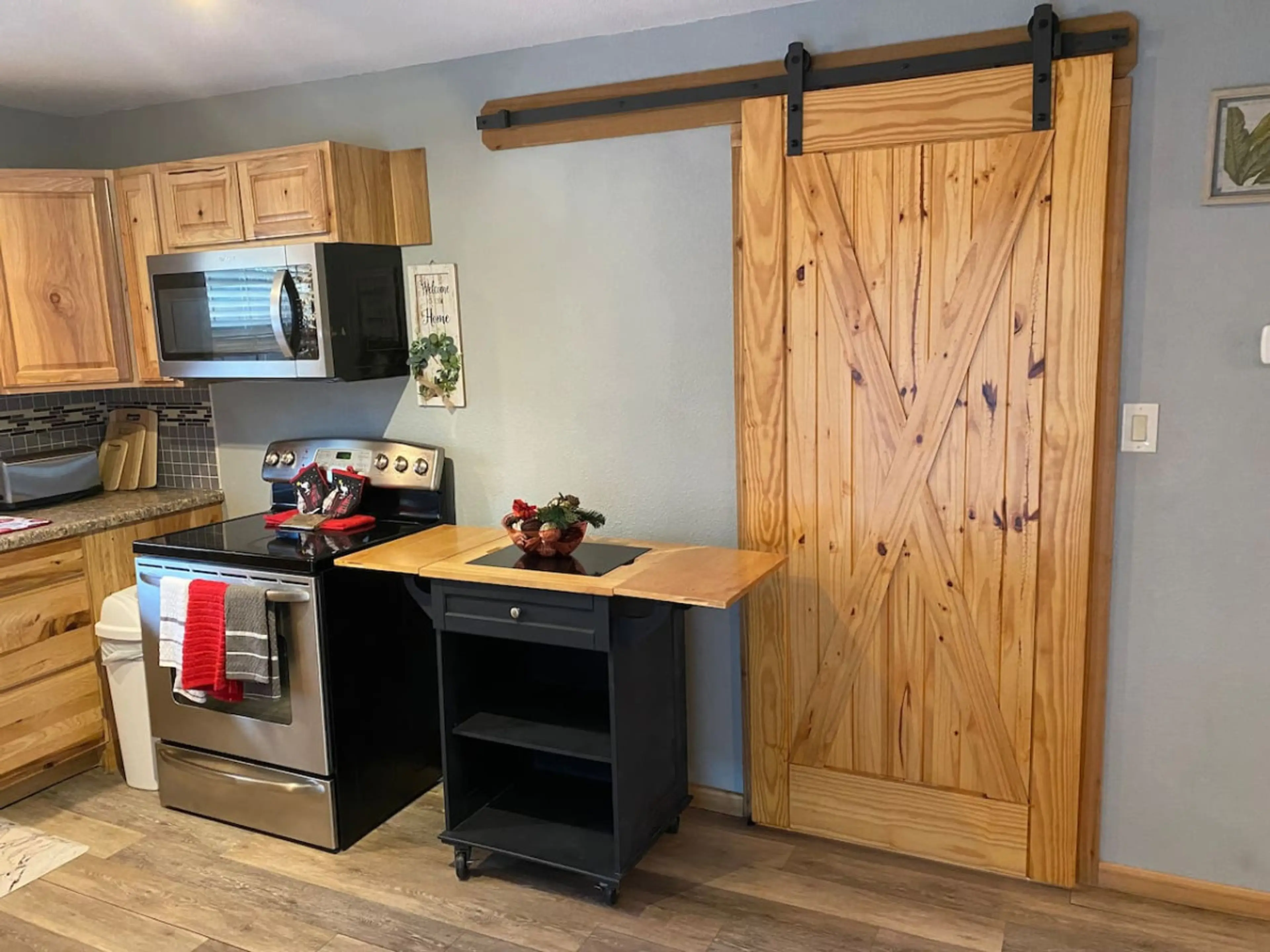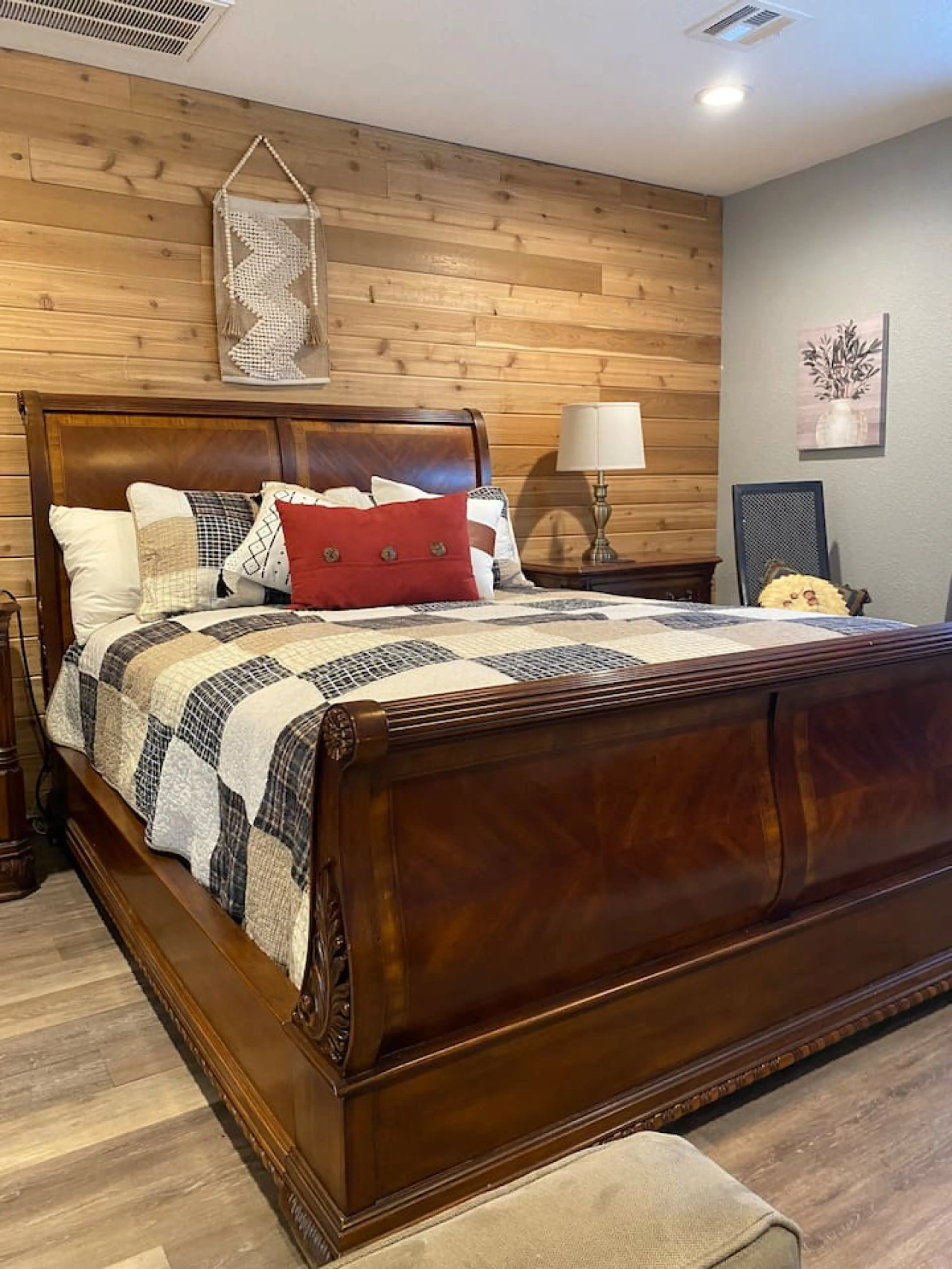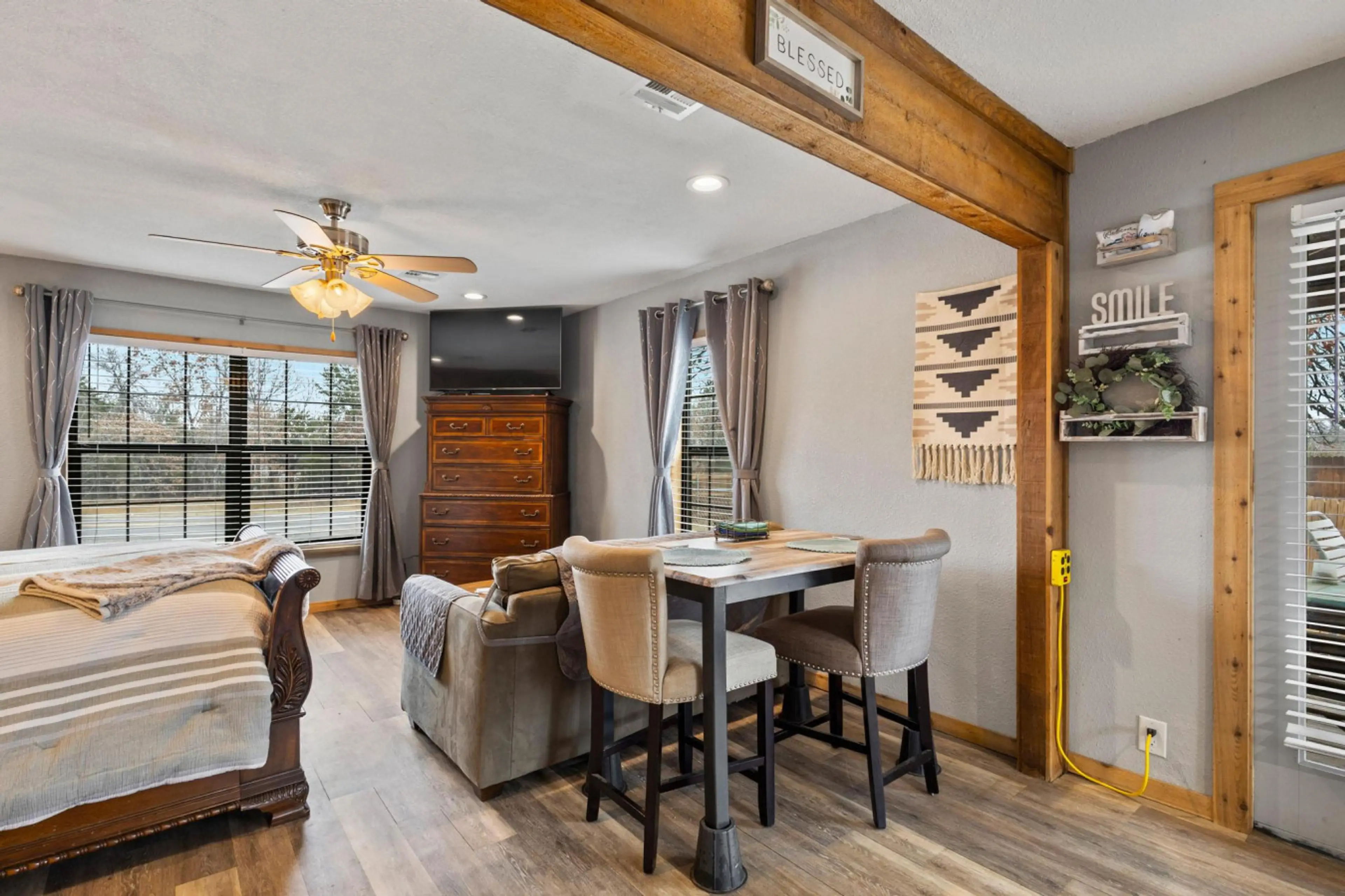 Take it easy at this unique getaway. Private and cozy. • Located minutes from Lake Texoma and Choctaw Casino. Enjoy shopping at the up-and-coming shops and dining of downtown Denison Tx. • Many amazing restaurants available within minutes or prepare your own meals in this cozy well equipped kitc...